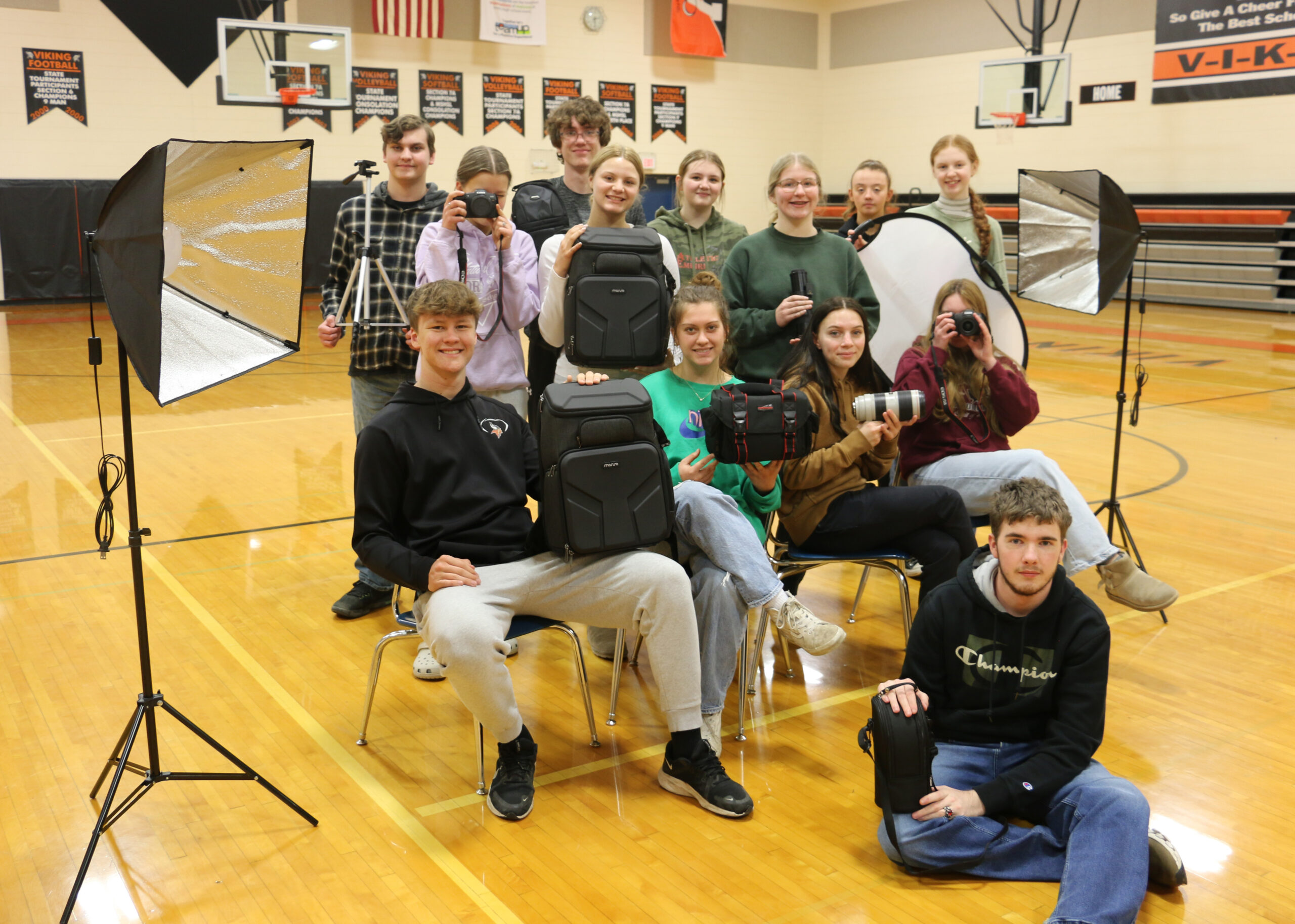 The grant provided to Littlefork-Big Falls for the Yearbook I and Yearbook II classes enabled the students to pursue careers in photo journalism and to work closely with local newspapers and to expand access to “professional” digital cameras and zoom lenses to 20 yearbook staff members as they develop higher level skills. Previously, only one digital camera was shared amongst the students which limited their ability to master exposures, aperture, shutter speed and flash. This grant provided two new Cannon EOS R8 cameras, two RF 24-50 mm lenses, and two Cannon EF 70-200 mm zoom lenses. This equipment will allow students to take action shots during sporting events, candid shots, and also work with professional photographers in the area who come to the school district and are paid to capture student events such as game day pictures for the local newspapers, school portraits, team pictures, and events such as prom. The grant also provided much needed lighting equipment. The students are very thankful for this generous grant..